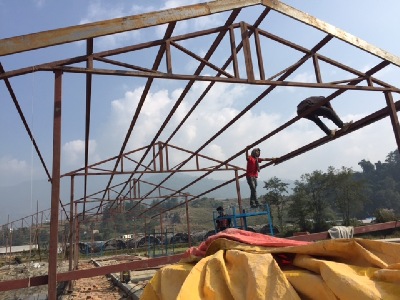 inzwischen am frühen Morgen nur noch bei etwa 0 bis -5 Grad. Es gibt noch viel zu tun mit dem Innenausbau und der Außenanlage. Schließlich sollen sich beim nächsten Monsunregen keine Seen vor den Gebäuden bilden.