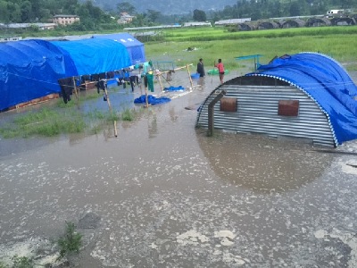 im Monsun: Regen im Überfluss, auch in den Zelten und Hütten !