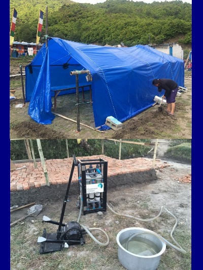 Provisorische Unterkünfte und Sanitäranlagen wurden errichtet, Wassertanks und Wasserfilter installiert (Mai & Juni).