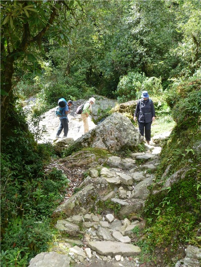 Unser Weg führt uns durch Terassenfelder und Wälder mit Rhododendron und Orchideen.