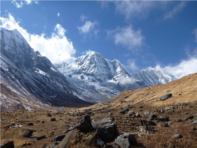 04.November 2012 gegen Mittag: unser Ziel ist erreicht, das Annapurna Basislager (4.100m) liegt vor uns !
